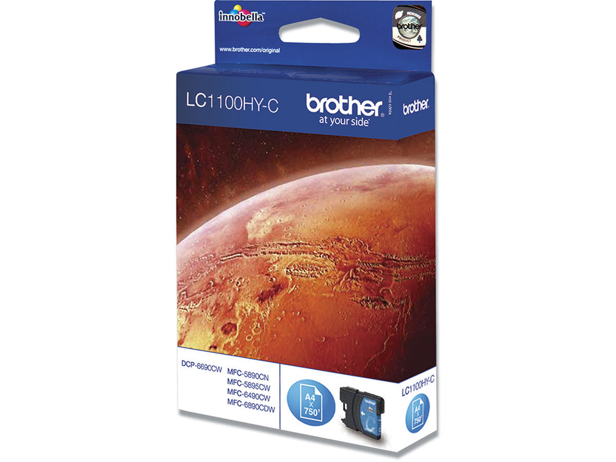 Blækpatron, 1 stk, 750 sider, Cyan-blå, Brother LC1100HYC