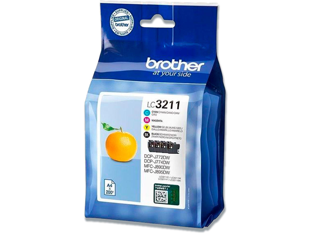 Blækpatroner, 4 stk, 200 sider, 4 farver, Brother LC3211VALDR