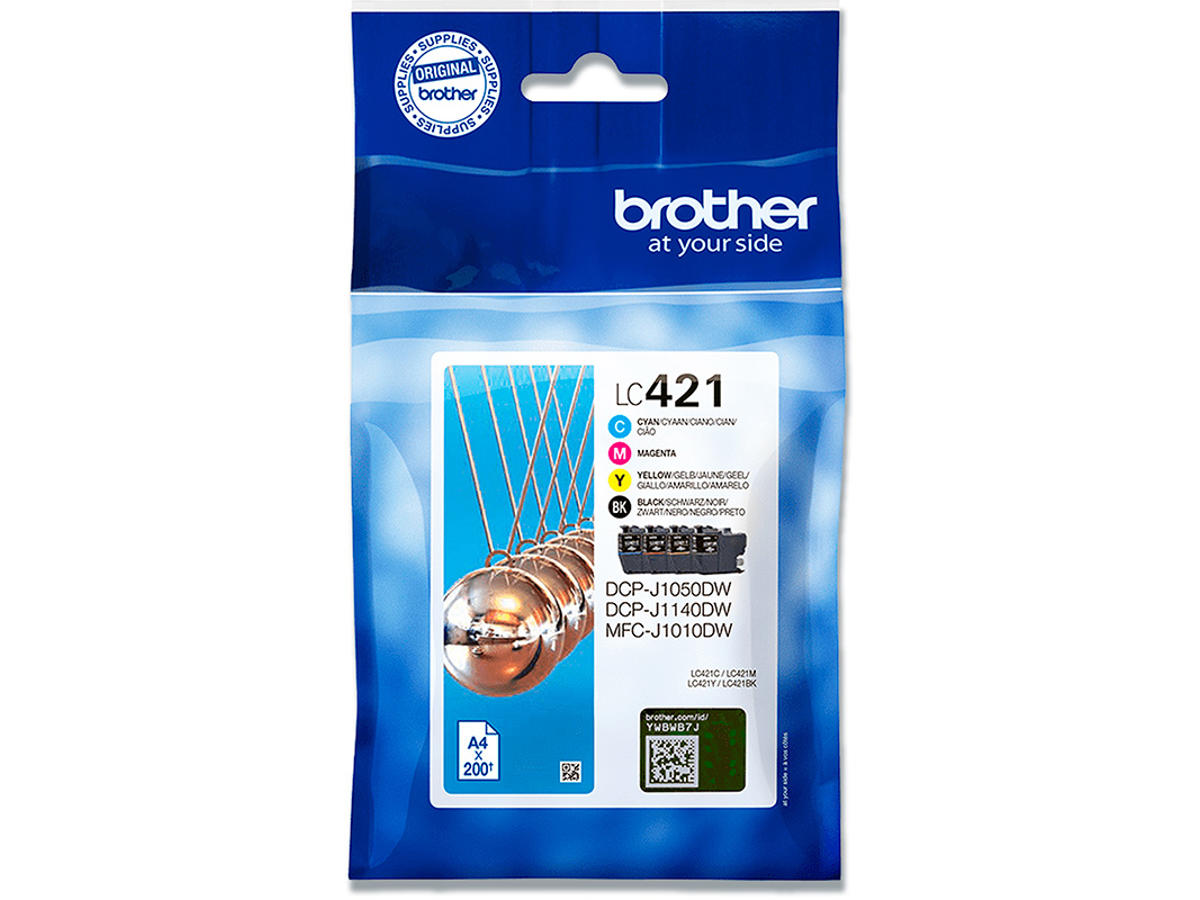 Blækpatroner, 4 stk, 200 sider, 4 farver, Brother LC421VALDR