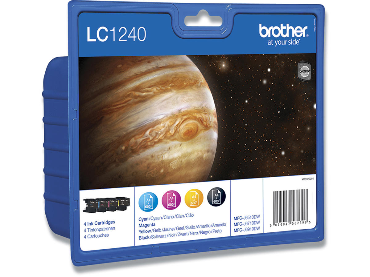 Blækpatroner, 4 stk, 4x600 sider, 4 farver, Brother LC1240VALBPDR