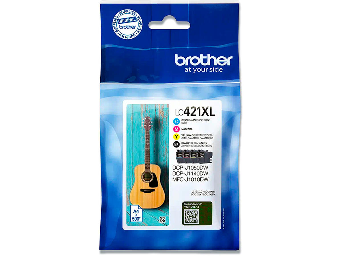 Blækpatroner, 4 stk, 500 sider, 4 farver, Brother LC421XLVALDR