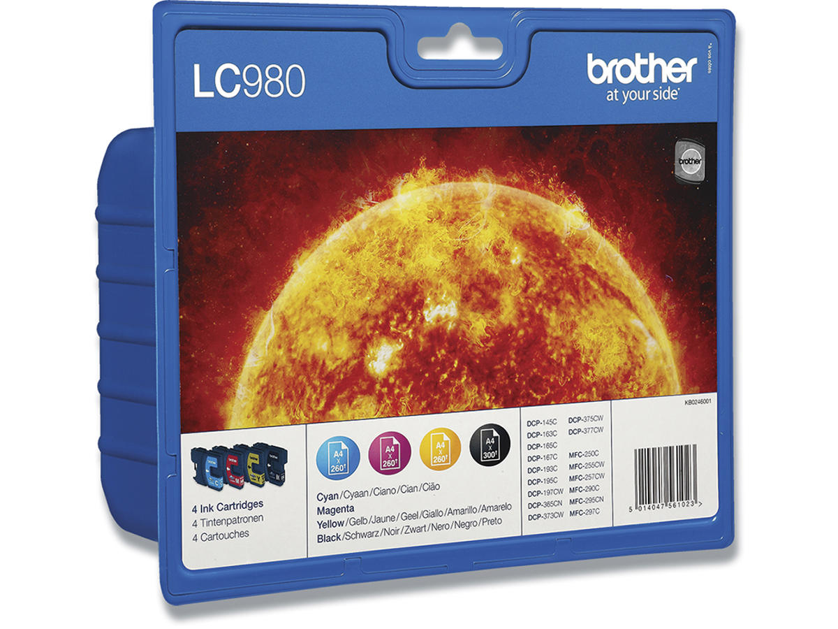 Blækpatroner, 4 stk, Sort: 300 sider Farver: 200 sider, 4 farver, Brother LC980VALBPDR