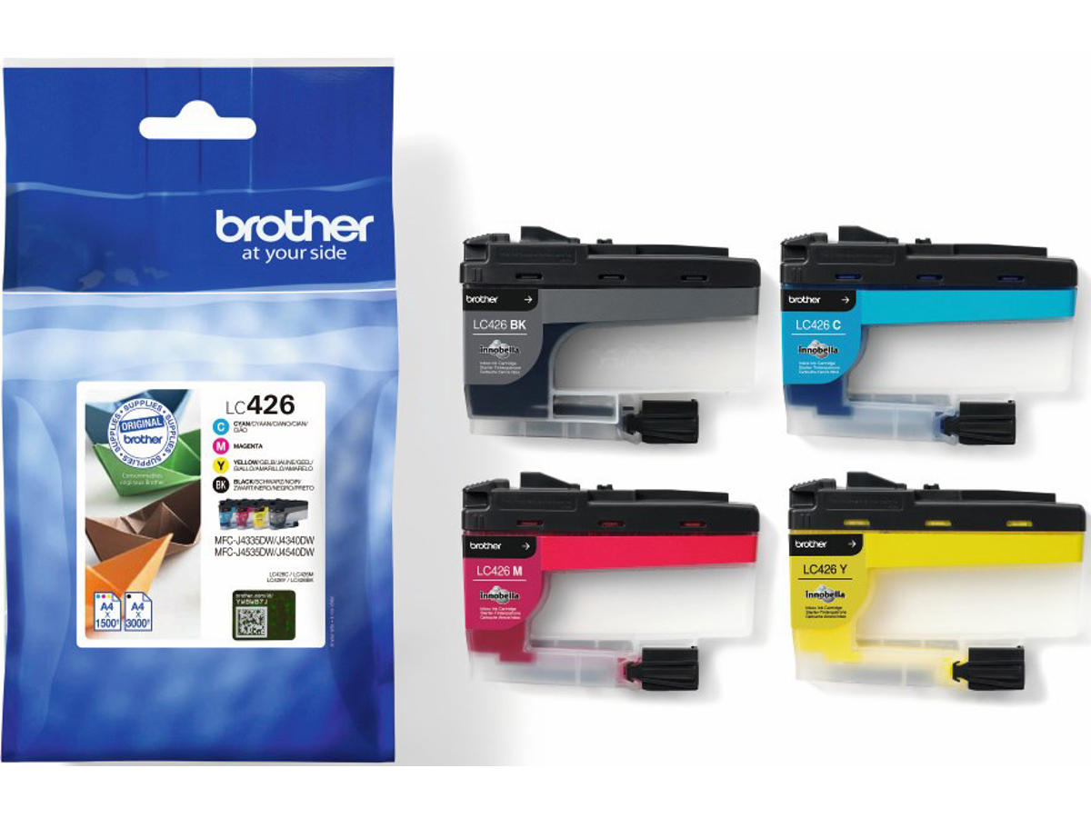 Blækpatroner, 4 stk, Sort: 3.000 sider Farver: 1.500 sider, 4 farver, Brother LC426VAL