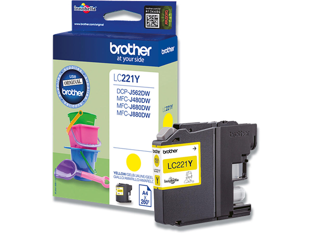 Blækpatron, 1 stk, 260 sider, Yellow-gul, Brother LC221Y