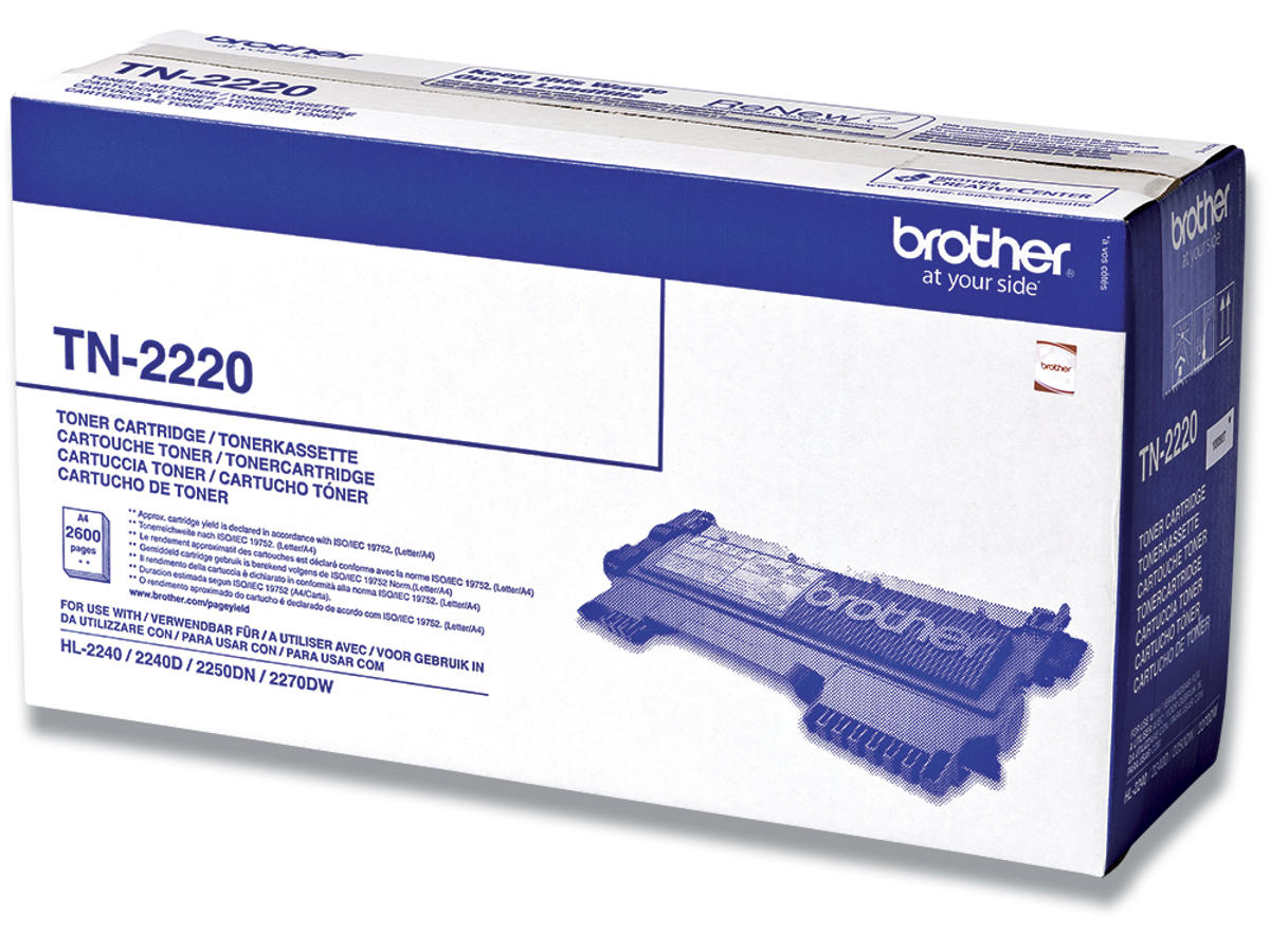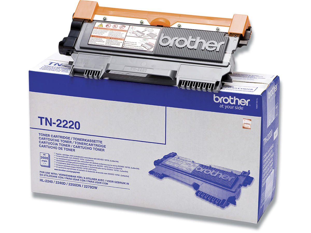Toner, TN2220, Black-sort, 2.600 sider, Brother