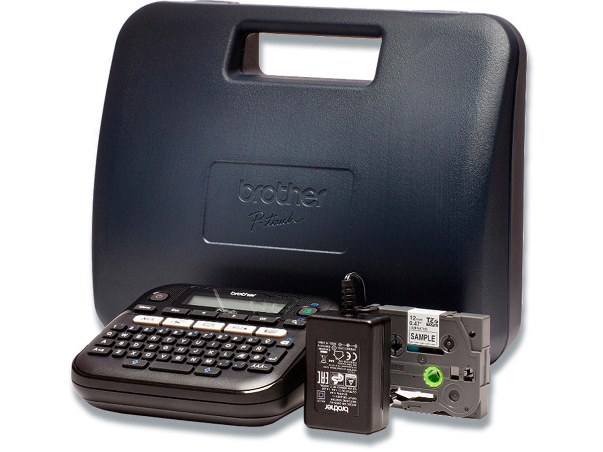 Alt hvad du behøver er inkluderet - en AC adapter, så du sparer penge på batterier og med sort skrift på hvid tape kan du opmærke med det samme. Alt dette leveres i en holdbar kuffert.