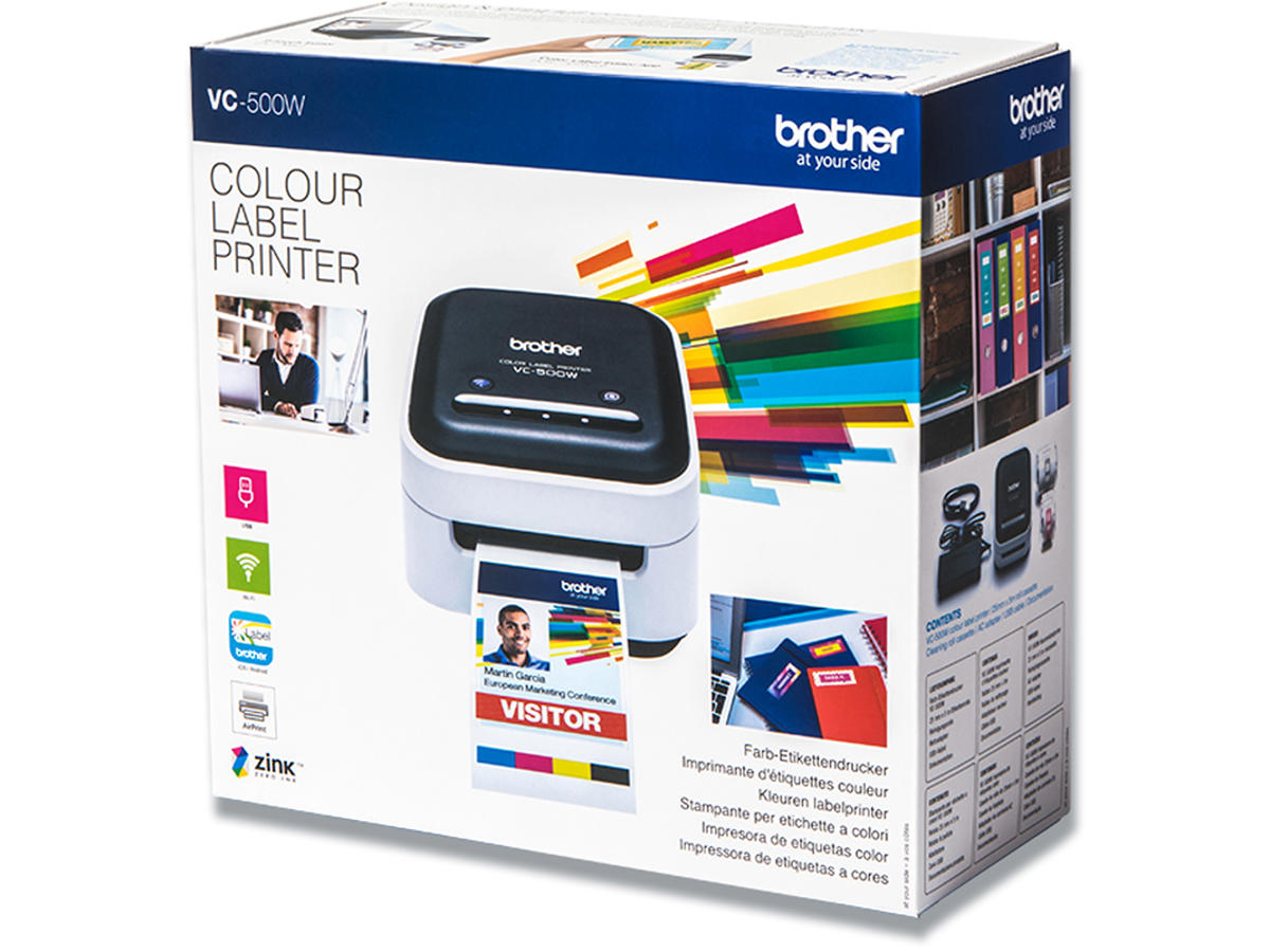 Brother VC-500W er den første labelprinter fra Brother, der printer farvelabels og gør dig i stand til at fremstille tydelige og farverige labels, der skiller sig ud. Med VC-500W kan du printe farvelabels med fotos eller firmalogoer, så de fremstår skarpt og professionelt.