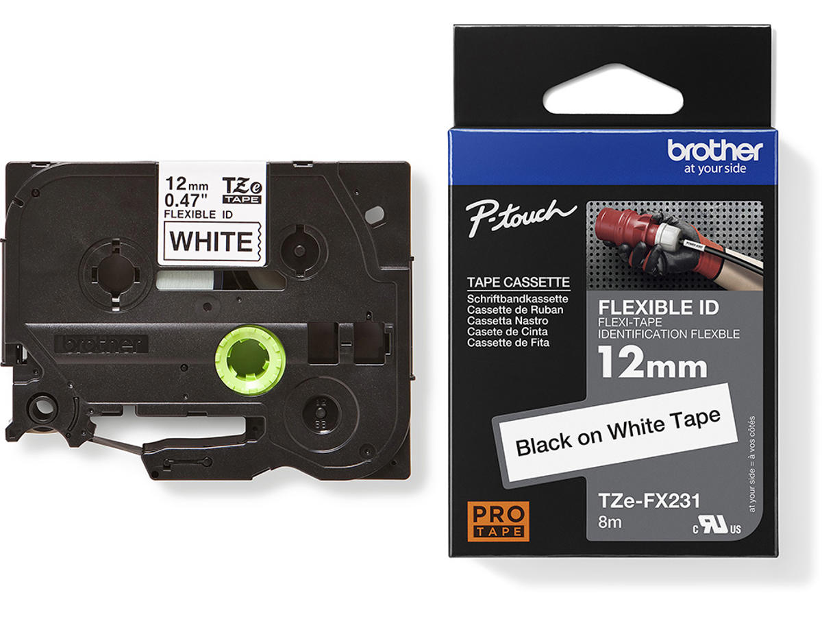 Labeltape, 12mm x 8m, Sort på Hvid, 1 rulle, Brother P-Touch TZe-FX231