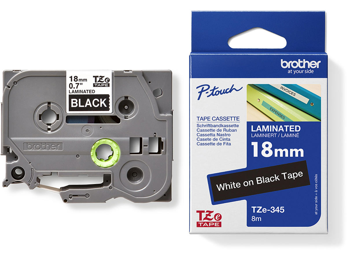 Labeltape, 18mm x 8m, Hvid på Sort, 1 rulle, Brother P-Touch TZe-345