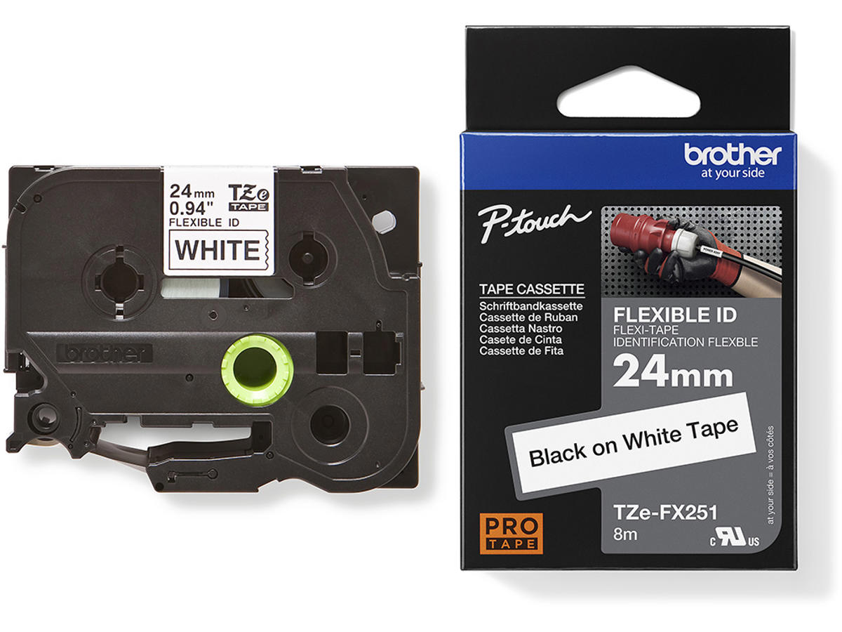 Labeltape, 24mm x 8m, Sort på Hvid, 1 rulle, Brother P-Touch TZe-FX251