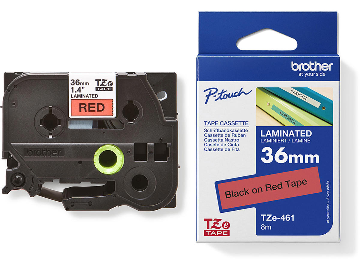 Labeltape, 36mm x 8m, Sort på Rød, 1 rulle, Brother P-Touch TZe-461