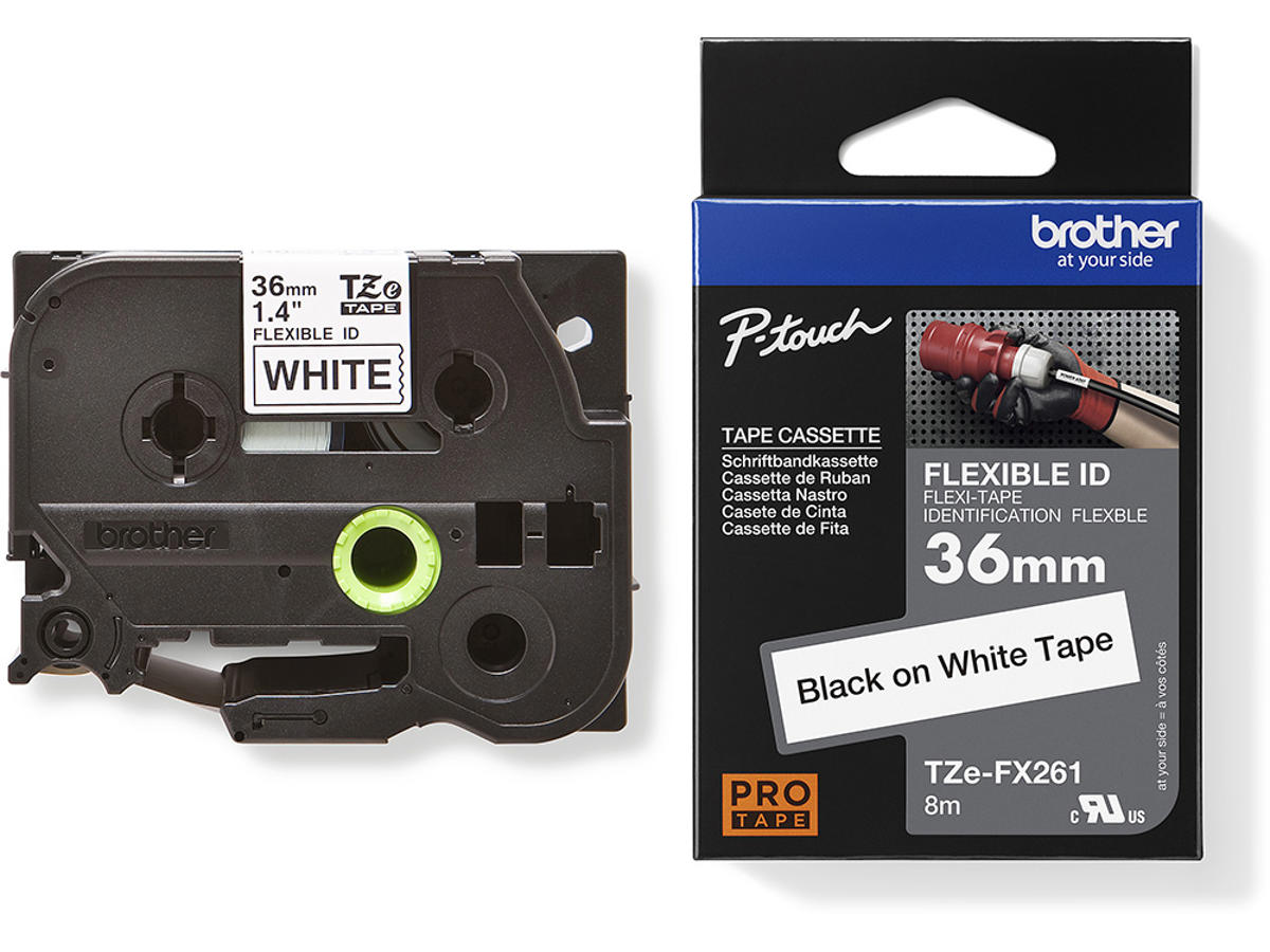 Labeltape, 36mm x 8m, Sort på Hvid, 1 rulle, Brother P-Touch TZe-FX261