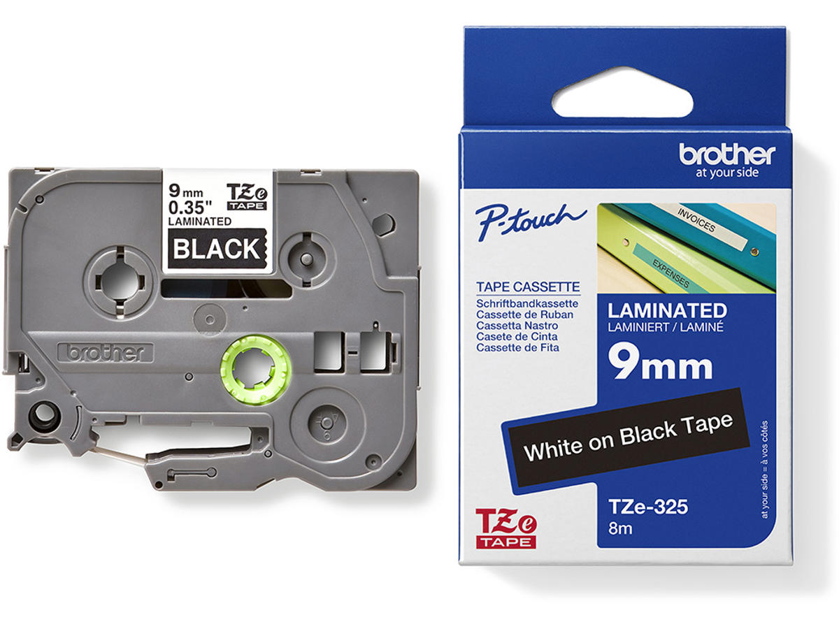 Labeltape, 9mm x 8m, Hvid på Sort, 1 rulle, Brother P-Touch TZe-325