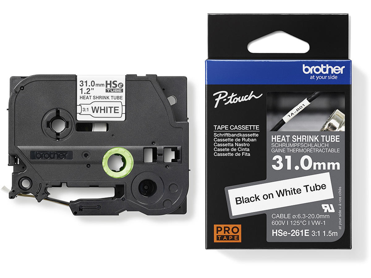 Labeltape, Krympeflex, 31.0mmx1.5m, Sort på Hvid, Brother P-Touch HSe261E