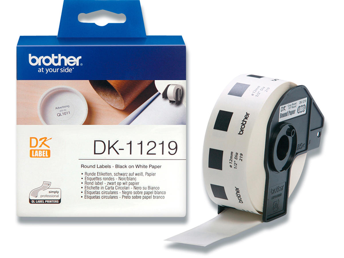Labeltape, Runde etiketter, Ø12 mm, 1 rulle, Brother P-Touch DK-11219