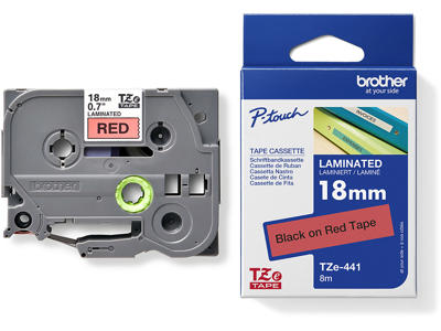 Labeltape, 18mm x 8m, Sort på Rød, 1 rulle, Brother P-Touch TZe-441