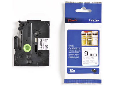 Labeltape, 9mm x 8m, Sort på Hvid, 1 rulle, Brother P-Touch TZe-N221