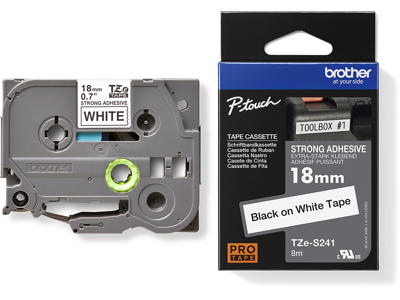 Labeltape, 18mm x 8m, Sort på Hvid, 1 rulle, Brother P-Touch TZe-N241