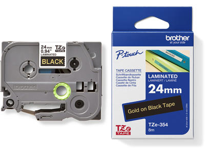 Labeltape, 24mm x 8m, Guld på Sort, 1 rulle, Brother P-Touch TZe-354