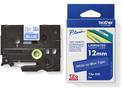 Labeltape, 12mm x 8m, Hvid på Blå, 1 rulle, Brother P-Touch TZe-535