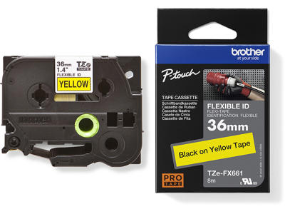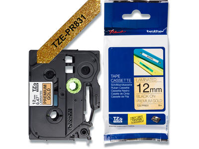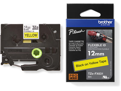 Labeltape, 12mm x 8m, Sort på Gul, 1 rulle, Brother P-Touch TZe-FX631