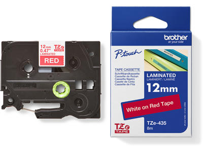 Labeltape, 12mm x 8m, Rød på Transparent, 1 rulle, Brother P-Touch TZe-132