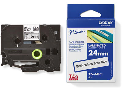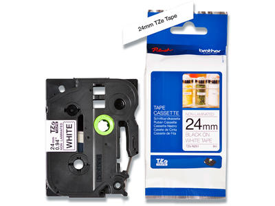 Labeltape, 24mm x 8m, Sort på Hvid, 1 rulle, Brother P-Touch TZe-FX251