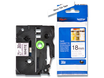 Labeltape, 18mm x 8m, Sort på Hvid, 1 rulle, Brother P-Touch TZe-SE4