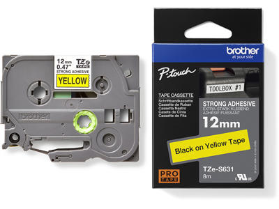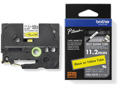 Labeltape, Krympeflex, 11.2mmx1.5m, Sort på Gul, Brother P-Touch HSe631E