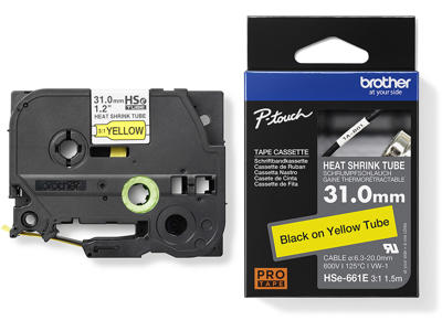 Labeltape, Krympeflex, 31.0mmx1.5m, Sort på Gul, Brother P-Touch HSe661E
