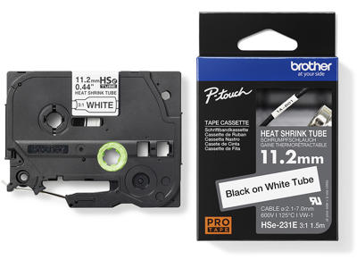 Labeltape, Krympeflex, 11.2mmx1.5m, Sort på Hvid, Brother P-Touch HSe231E