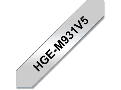Labeltape, 12mm x 8m, Sort på Mat Sølv, 5 ruller, Brother P-Touch HGe-M931V5 Labeltape, 12mm x 8m, Sort på Mat Sølv, 5 ruller, Brother P-Touch HGe-M931V5