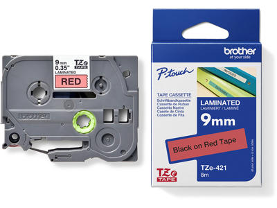 Labeltape, 9mm x 8m, Sort på Rød, 1 rulle, Brother P-Touch TZe-421