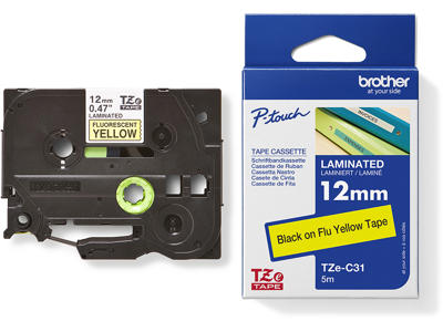 Labeltape, 12mm x 5m, Sort på Neon Gul, 1 rulle, Brother P-Touch TZe-C31