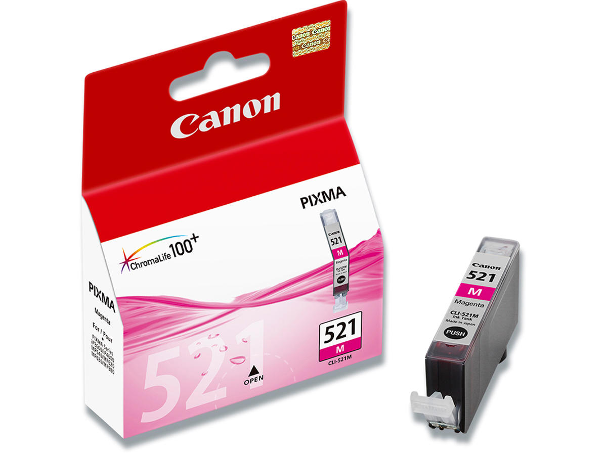 Blækpatron, 1 stk, 350 sider, Magenta-rød, Canon CLI-521M