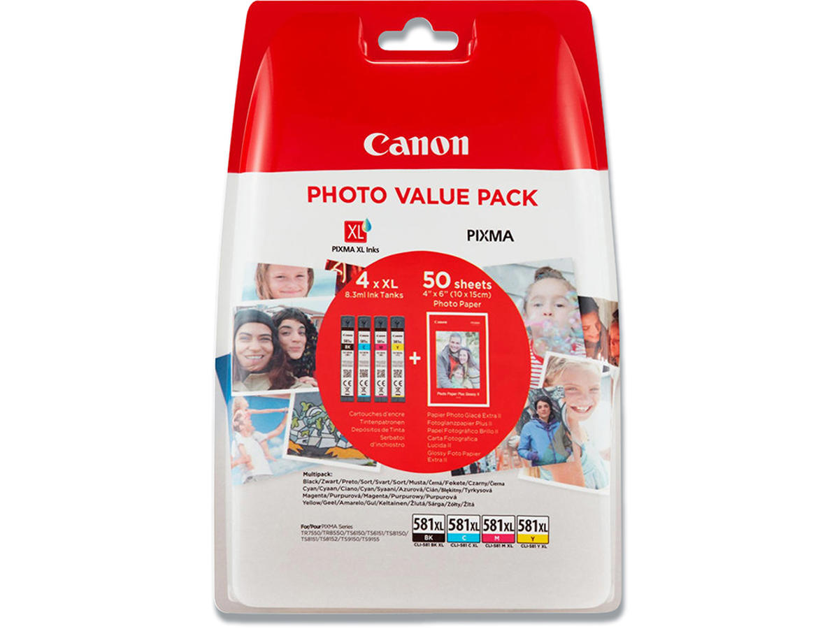 Blækpatroner, 4 stk, 4 farver, Black-sort, Canon CLI-581XL