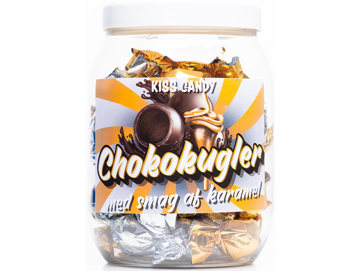 Indpakkede mælkechokoladekugler med karamelcreme i guld og sølv folie