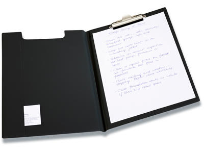Nogle af vores clipboardmapper har den suveræne funktion, at de har en penneholder i ryggen. Det betyder, at du kan have blyanten med på farten og sætte den fast i clipboardmappen, så den ikke bliver væk.