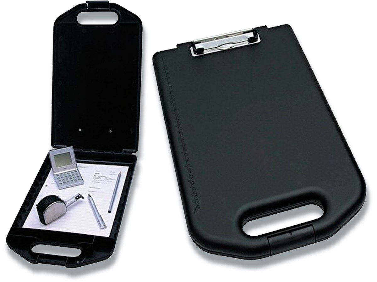 Clipboard fra Wedo i slagsikker plast. Med solid klemme i metal. Har et 2,3cm højt rum, hvor der bl.a. kan opbevares kuglepen, lommeregner eller tomme formularer Mål: 42x25x4cm