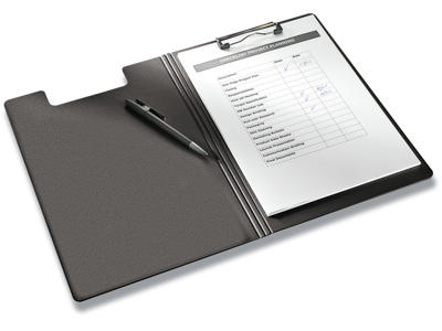 Nogle af vores clipboardmapper har den suveræne funktion, at de har en penneholder i ryggen. Det betyder, at du kan have blyanten med på farten og sætte den fast i clipboardmappen, så den ikke bliver væk.