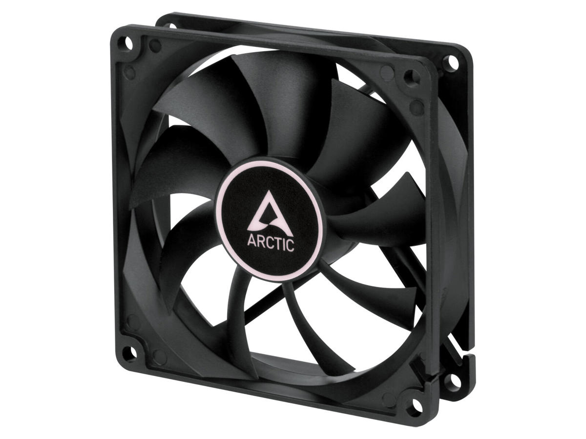ARCTIC F9 PWM PST. Type: Ventilator, Ventilator diameter: 9,2 cm, Omdrejningshastighed (min.): 150 rpm, Omdrejningshastighed (maks.): 1800 rpm, Støjniveau: 0,4 blæser, Luftstrøm: 73,1 m³/t, Lejetype: Fluid Dynamic Bearing (FDB). Spænding: 12 V. Bredde: 92 mm, Dybde: 92 mm, Højde: 25 mm. Produktfarve: Sort