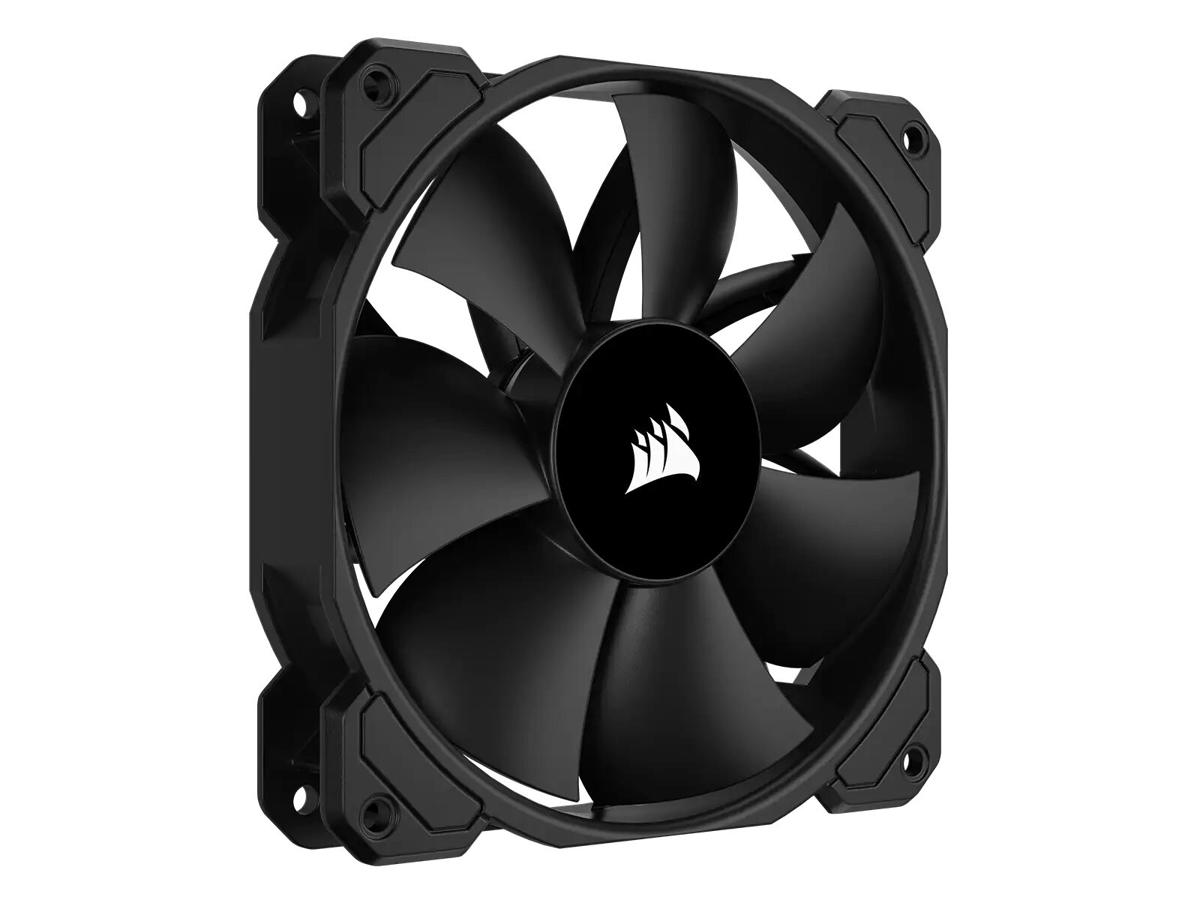 Corsair SP120 ELITE. Type: Ventilator, Ventilator diameter: 12 cm, Omdrejningshastighed (min.): 300 rpm, Omdrejningshastighed (maks.): 1300 rpm, Minimum lufttryk: 0,07 mmH2O, Maksimalt lufttryk: 1,23 mmH2O, Lejetype: Hydraulisk. Produktfarve: Sort