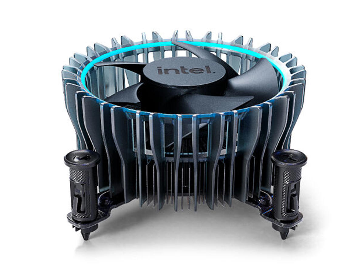 Intel Laminar RM1. Type: Luftkøler, Omdrejningshastighed (min.): 600 rpm, Omdrejningshastighed (maks.): 3150 rpm. Spænding: 10.8 - 13.2 V. Bredde: 100 mm, Dybde: 100 mm, Højde: 47 mm. Produktfarve: Sort, Blå