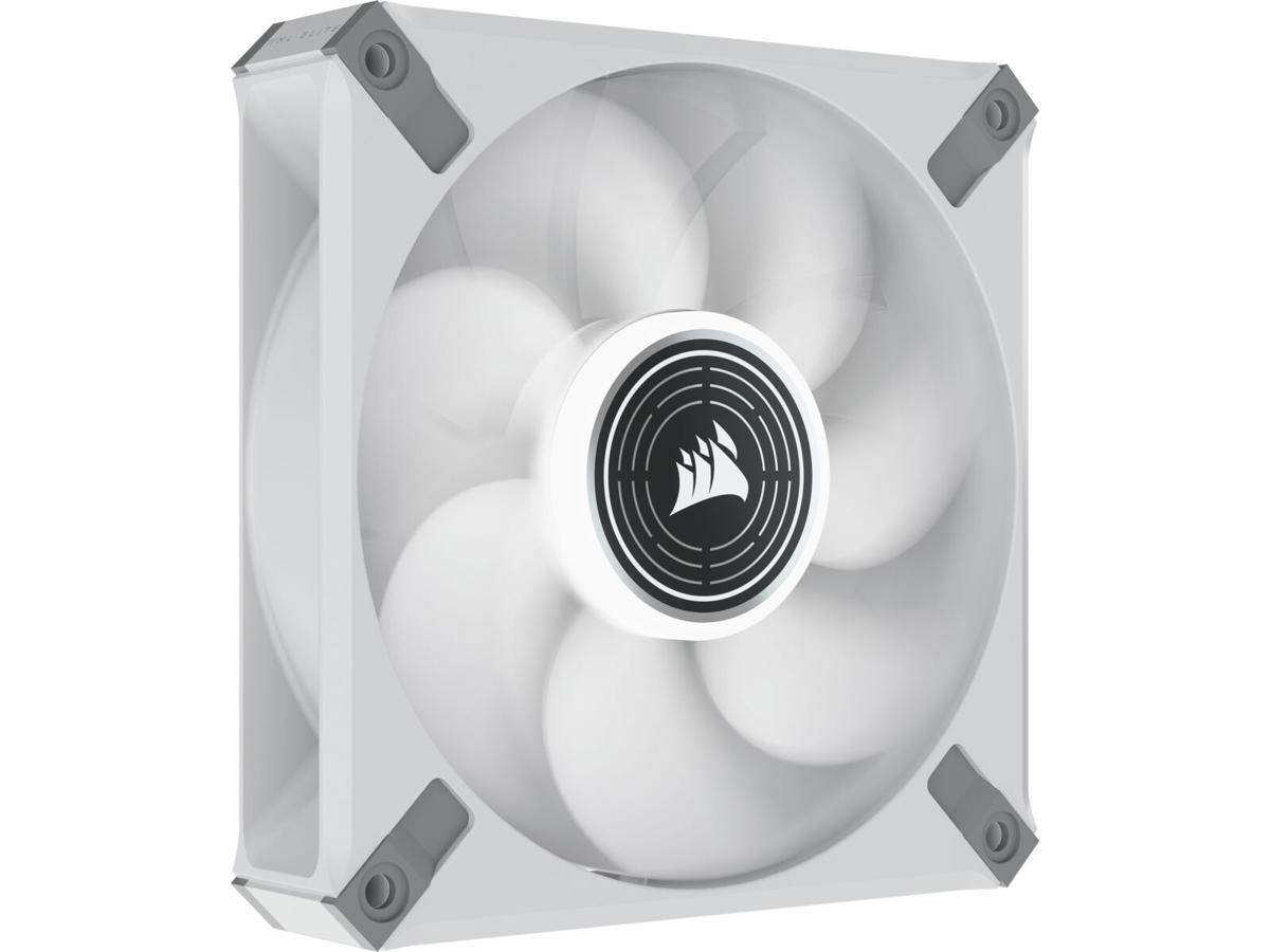 The CORSAIR ML120 LED ELITE White Premium 120mm PWM Magnetic Levitation Fan - White Frame boasts CORSAIR AirGuide technology and a magnetic levitation bearing for high-performance quiet, colorful cooling.