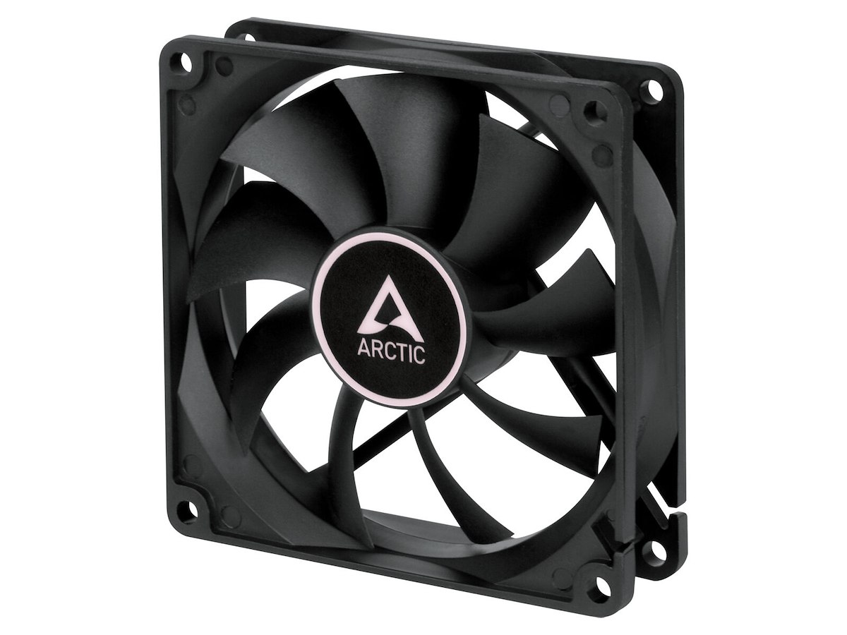 ARCTIC F9 PWM PST CO. Type: Ventilator, Ventilator diameter: 9,2 cm, Omdrejningshastighed (min.): 150 rpm, Omdrejningshastighed (maks.): 1800 rpm, Støjniveau: 0,4 blæser, Luftstrøm: 73,1 m³/t, Minimum lufttryk: 1,35 mmH2O, Lejetype: Dobbelt kugleleje. Spænding: 12 V. Bredde: 92 mm, Dybde: 92 mm, Højde: 25 mm. Produktfarve: Sort