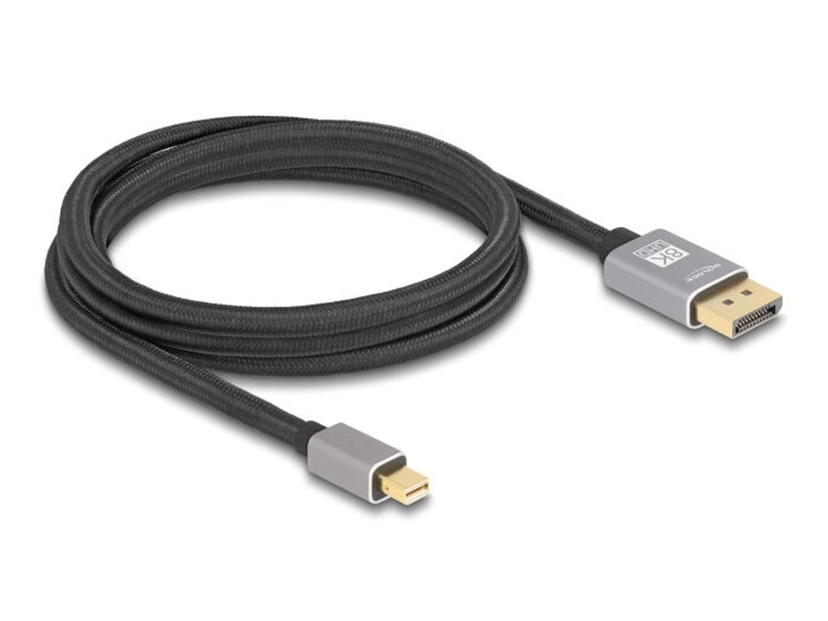 This DisplayPort cable by Delock is used to connect devices with a DisplayPort interface, such as monitors, projectors or televisions, to a PC or laptop with a mini DisplayPort interface.