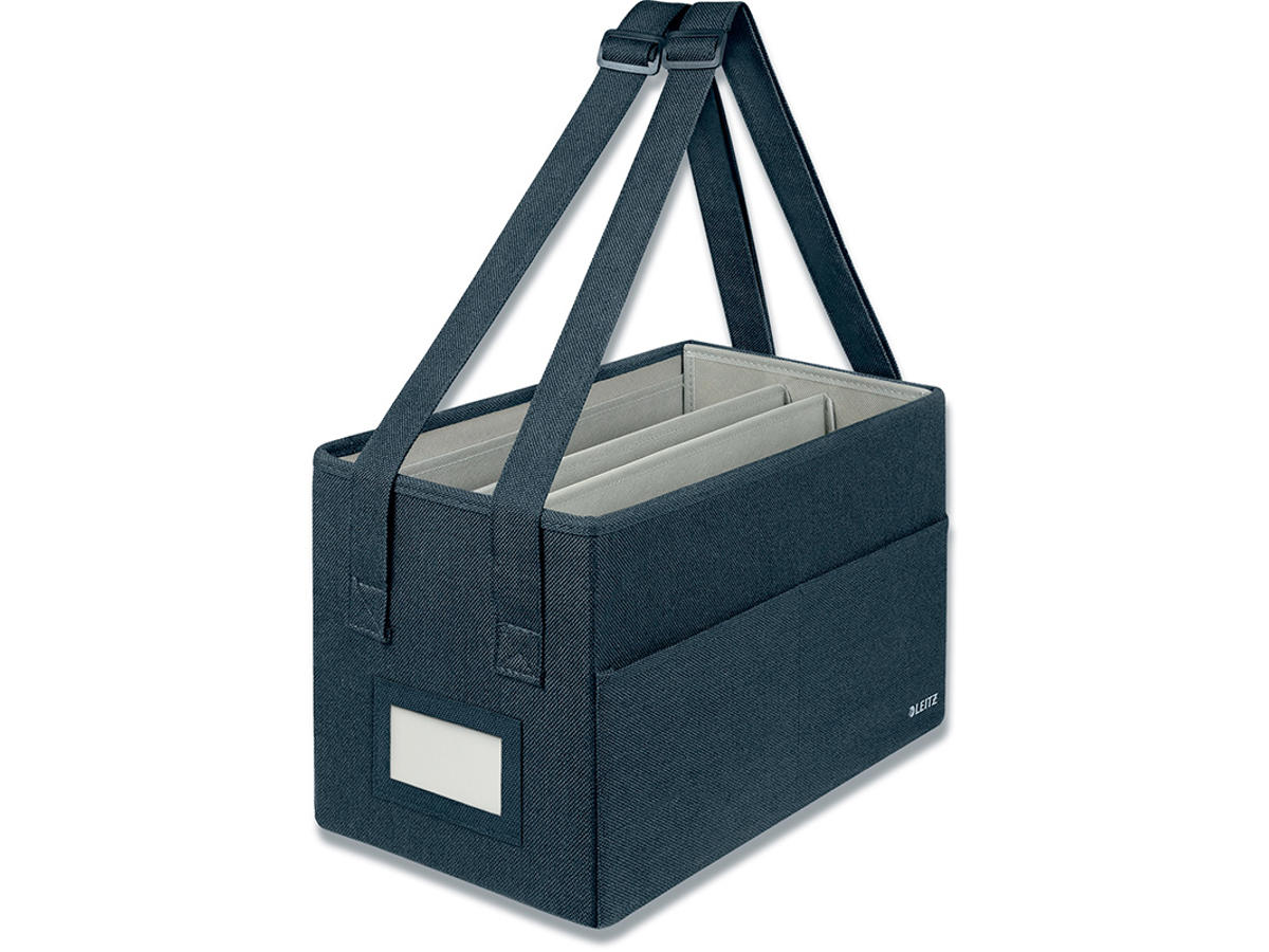 Føl dig hjemme, uanset hvor din dag fører dig hen, med opbevaringsserien i stof fra Leitz. Med sit minimalistiske design og indbydende matgrå fløjlsfinish kan du være stilfuld, mens du forbliver organiseret på kontoret, hjemme, arbejder hybrid eller hvor som helst derimellem. Leitz kompakt hot desking-arbejdstaske i stof har tre separate rum, der giver dig mulighed for at opbevare og bære alt, hvad du har brug for til den kommende dag. Denne moderne og praktiske opbevaringstaske har plads nok til at rumme en bærbar computer på op til 14'', et kompakt tastatur, en mus, et opladningskabel, et headset, en notesbog og en vandflaske. Den passer i skabe eller reoler med minimumsmål på 370 x 210 mm og en højde på 220 mm. Også velegnet som lærertaske. Fremstillet af blødt materiale forstærket med recirkuleret pap for styrke og holdbarhed. Samlet 57% recirkuleret materiale. Når den ikke er i brug, er tasken fuldt sammenfoldelig, så den nemt kan gemmes væk. Navneskiltet, der følger med tasken, giver dig mulighed for nemt at identificere den i fælles rum. Denne hot desking-arbejdstaske med bærehåndtag i justerbar længde er den perfekte tilføjelse til dit hjem, kontor eller skole for at sikre, at du forbliver afslappet og produktiv hele dagen.