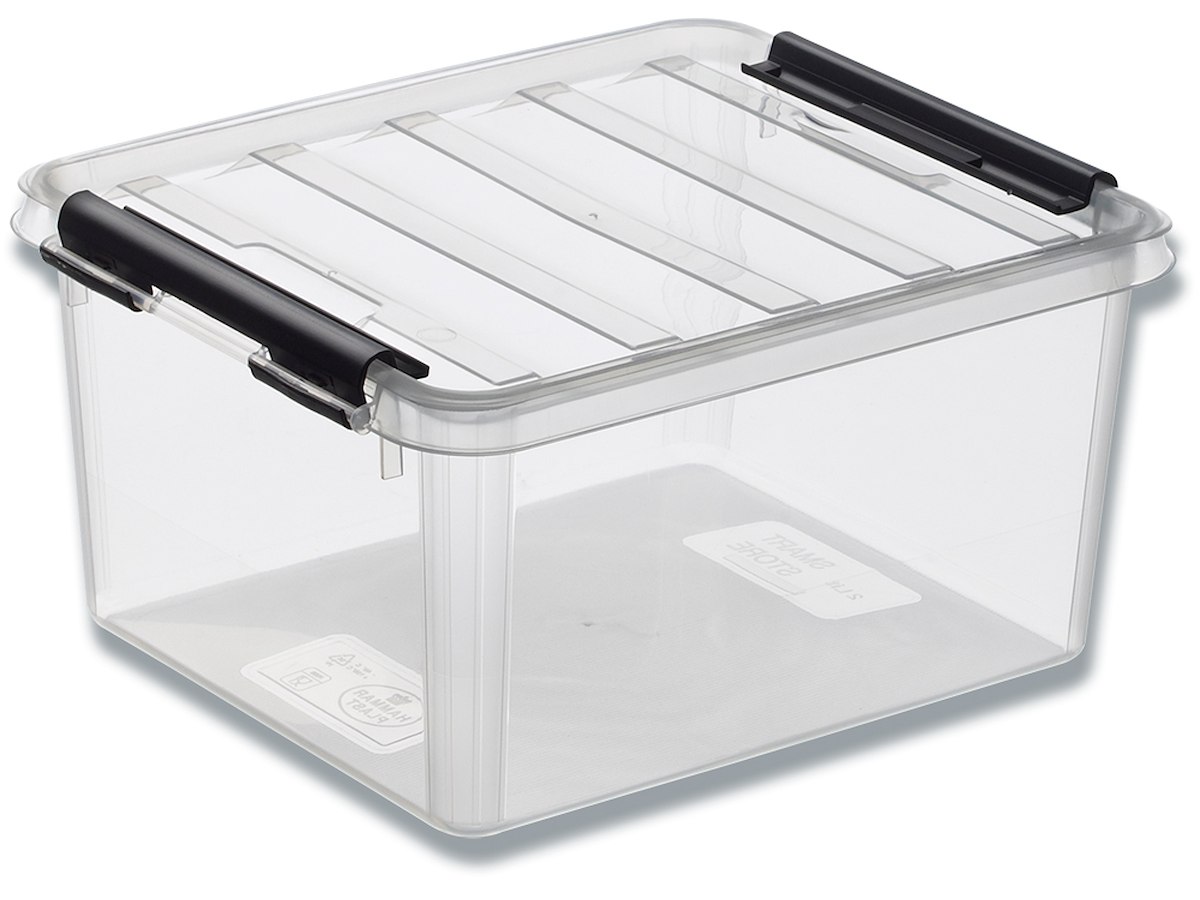 Plastkasse, Transparent, 2 liter, Med låg, 21x17x11cm, Smart Store