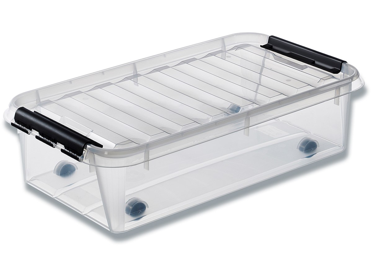 Plastkasse, Transparent, 35 liter, Med låg, Med hjul, 72x40x20cm, Smart Store