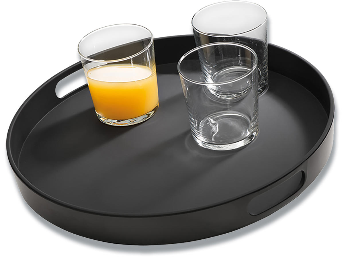 Tjenerbakke m/kant sort melamin m/antislip Ø35,5xH4,5cm